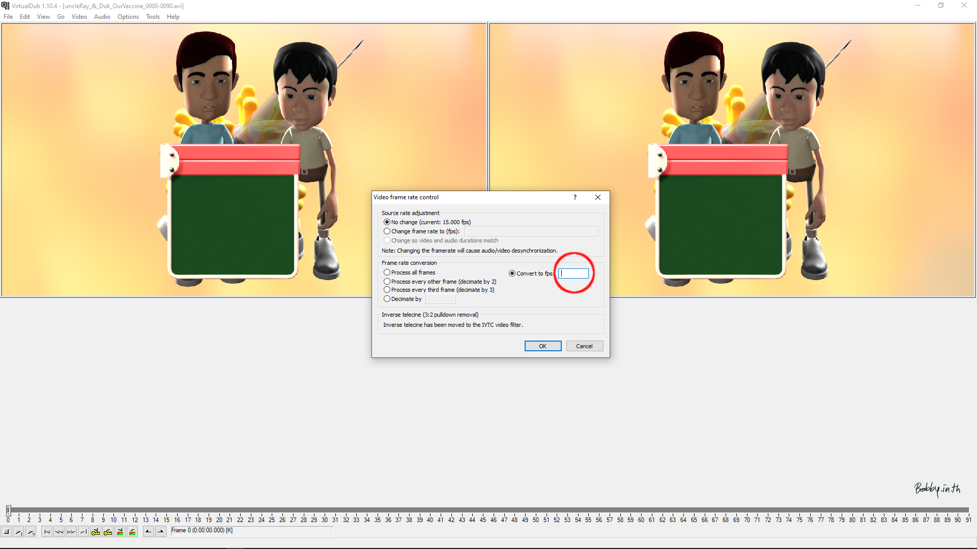 นำไปเปลี่ยนค่า fps ใน VietualDub